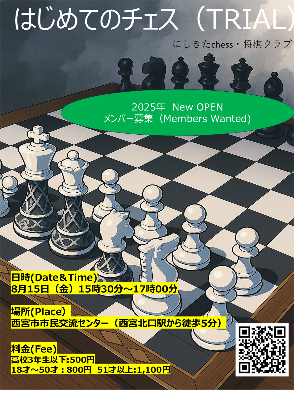 将棋連盟は会費はございません。 大会に出場する場合は、チェス・将棋とも別途費用が発生する場合がございます。 |